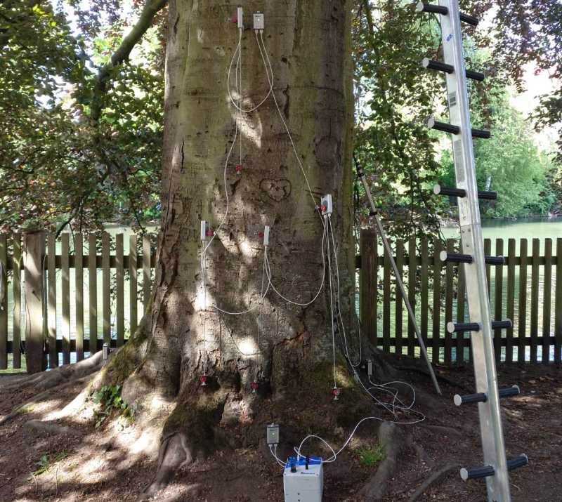 Simulierte Windlasten zur Messung der Bruch- und Standsicherheit eines Baumes