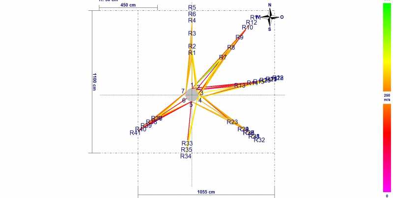 Das durch Klopfen ausgelöste Impuls-Signal wird zu den anderen Sensoren, die rund um den Baum befestigt sind, gesendet. Sind Wurzeln vorhanden, wird das Signal rasant über diese Wurzeln bis zum Baum übertragen. Der Weg des Schalls wird durch die Software aufgezeichnet und in eine grafische Darstellung übertragen.